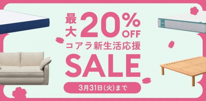 2026年2月23日(月・祝)〜3月31日(火)の期間『コアラ新生活応援セール』を開催中。看板商品のマットレスをはじめ、限られたスペースを有効活用できるソファーベッドなど、人気アイテムがなんと最大20%OFF。