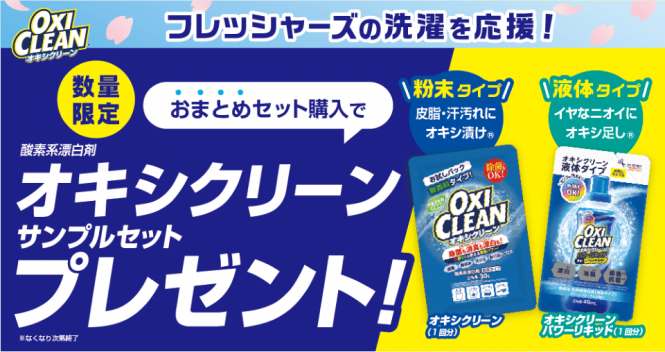 店頭キャンペーン概要プレゼント内容:オキシクリーンのサンプルセットをプレゼント