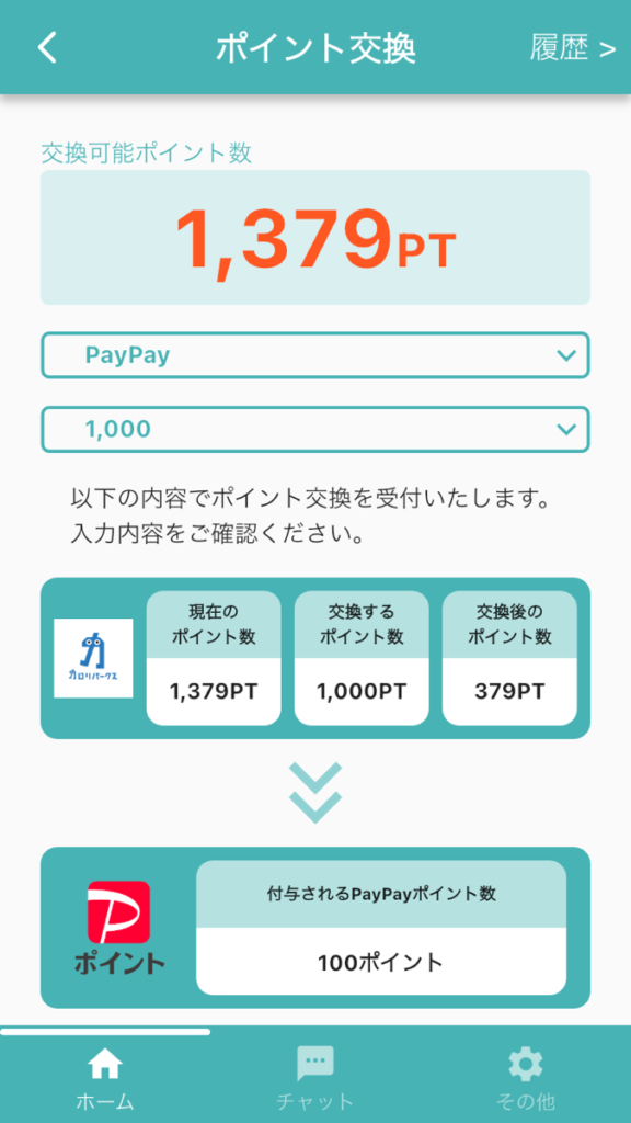 1,000ポイントからPayPayポイントに交換することが可能とのこと。私の場合は、1000ポイントをPayPayポイント100円分に換算できるようでした。