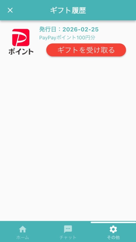 「ギフトを受け取る」の欄をタップすると、自動的にPayPayアプリへ遷移します。