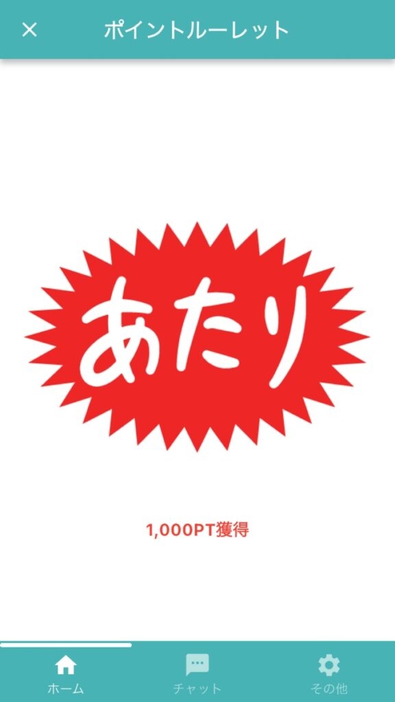 なんと!「あたり」が出ました~。1,000ポイントゲットです。