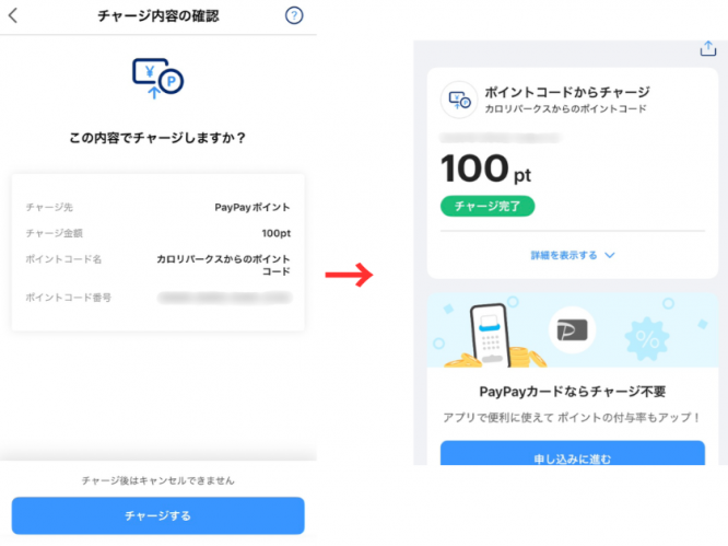 「チャージする」をタップすると、PayPayポイントとしてのチャージが完了しました。やったー!ちょっとした臨時収入みたいで嬉しい♪
