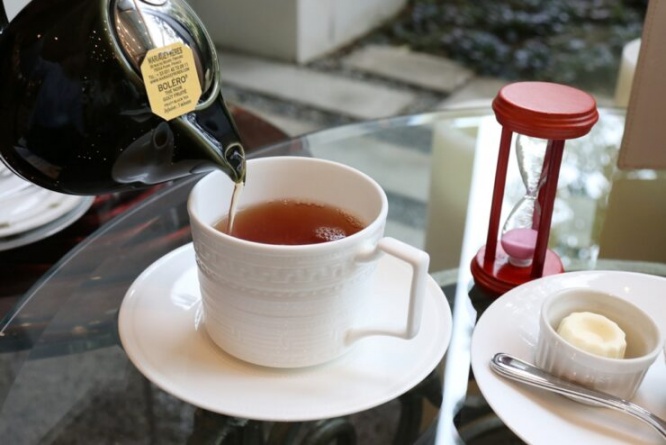 アフタヌーンティーのドリンクは、マリアージュフレールティーセレクションより、スタンダードプランは1杯、ティーセレクションプランは飲み放題で楽しめます。上写真は柑橘や白桃、アプリコットなどの果実の香りでなめらかな味わいの「ボレロ」です。