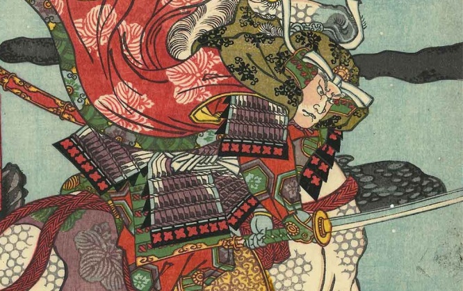 その時、カメラが後ろに回りました。そこで筆者は、あることに気づきます。この人物が着用していたのは、背中の開いた甲冑、つまり腹巻だったのです。