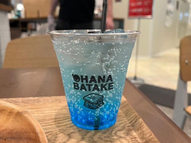 見た目も涼やかな『ハワイアンソーダ』は、シュワッと爽快な飲み心地。サンドイッチのコクをリセットして、最後まで美味しく楽しめますよ。