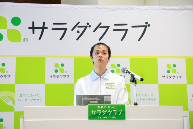 発表会当日、まず同社 取締役社長 新谷氏より、パッケージサラダの新たな市場への挑戦について発表があった。