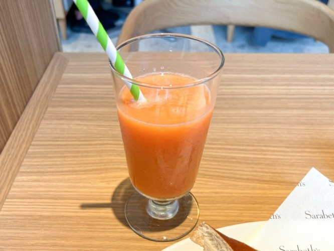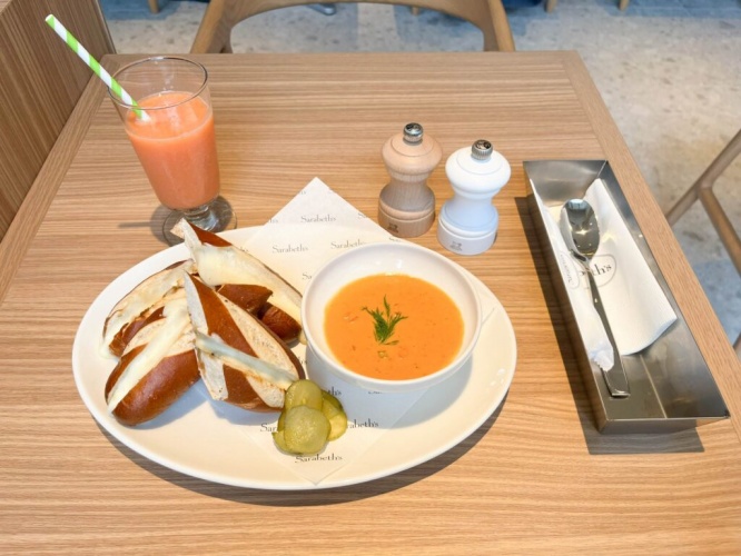 プレッツェルチーズサンドはなかなかのボリュームですが、美味しさのあまり、あっという間に完食してしまいました。サンドだけでなく、スープもジュースも素材を大切にしていることが食べた瞬間から伝わってくる、そんな味わいでした。