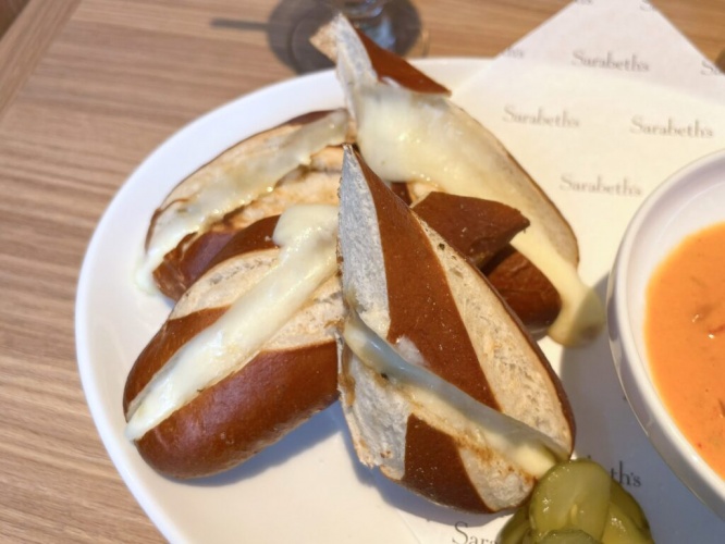 プレッツェルチーズサンドは、見るからに香ばしそうなプレッツェルに、たっぷりのチーズが入っています。チーズがトロトロにとろけていて美味しそう~!