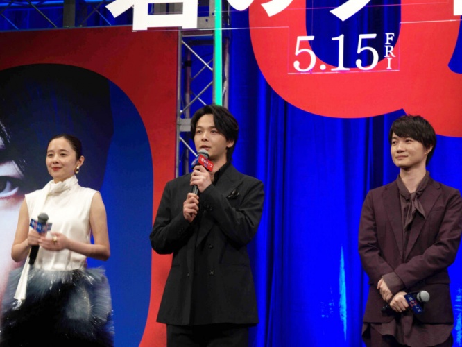 さらに「1回で観るのは難しいよという方は、10回、20回と観ていただければ」とさりげなくリピートをおすすめすると、神木からは「3回とか5回とかで刻まなくていきなり10の位に行くんだね」というツッコミが。中村は「10の位で行くタイプだから」と答え、会場の笑いを誘った。