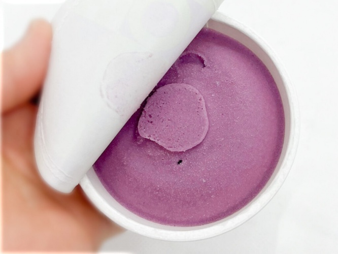 ではさっそく一口。アサイーやベリー類の甘酸っぱさ、みずみずしさが口いっぱいに広がります。スッとアイスが溶けた後にバナナならではのコクが口に残り、まるで贅沢にフルーツを盛りつけたアサイーボウルをいただいたような満足感。これは美味しい~!