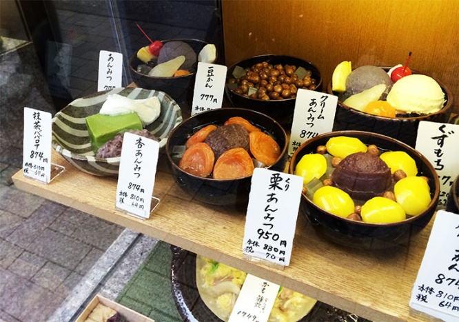 この『紀の善』では、クリームあんみつ(874円)、抹茶ババロア(874円)、栗あんみつ(950円)も名物として知られている。