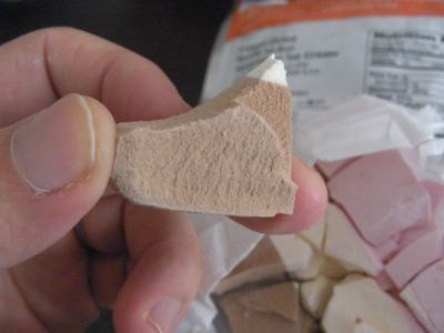 早速食べてみると、食感がまずありえないことだが、発泡スチロールを噛んでいるような「シュコシュコ」した感じだ。