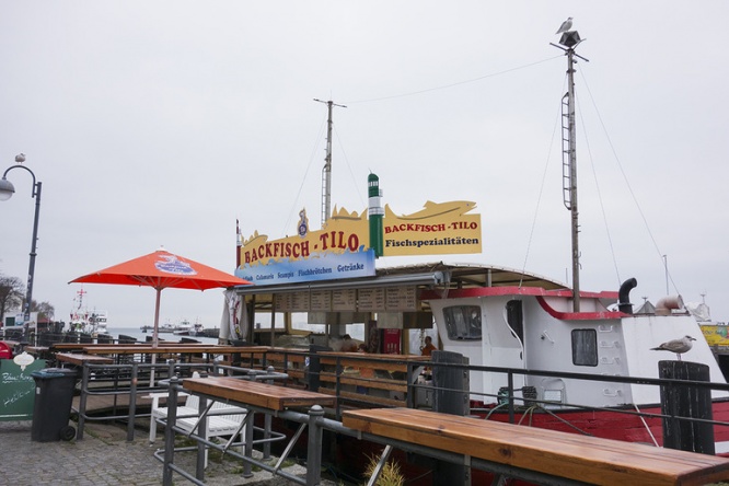 夏場はさぞ気持ちが良かろうと、寒空の下で桟橋に停泊された船を眺めながら、熱々のタラを頬張りつつ、やはり、新鮮な寿司ネタへの想いは冷めないまま、この後、もう少し、ロストックの街を散策に出かけます。