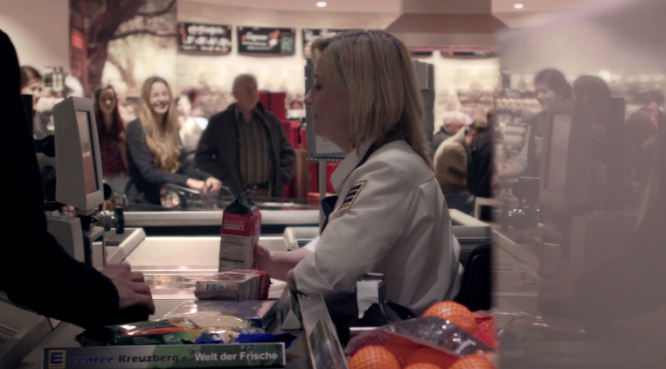 ドイツ最大手のスーパーマーケット 『エデカ (EDEKA)』が、クリスマスでドイツ中が浮き足立つ12月に、とっても素敵なサプライズをしてくれちゃいました。 これは、ちょっと予想外♪ 急いでる時に遭遇しちゃったら、イラっとしそうだけど ねw