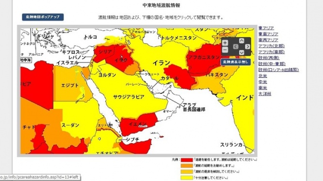 上の画像でもおわかりのように、中東諸国でも、真っ白なのはUAEとカタール、オマーンという、日本の外務省お墨付きの場所でもあります(2014年12月現在)。