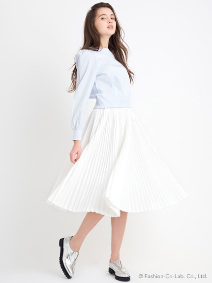 レディらしいシルエットはミディアムな丈感で程よい肌見せも叶えてくれます。詰まった襟が今年らしい、春にオススメのコーディネイトです。