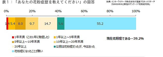 4人に1人は花粉症歴10年以上!