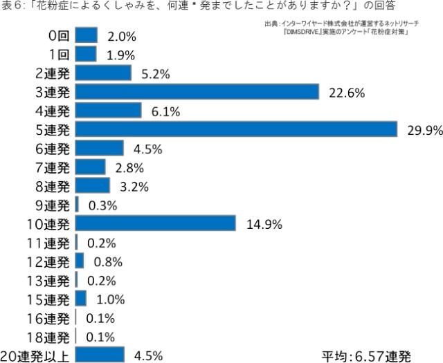 くしゃみ連発の平均回数は「6.57回」