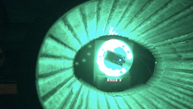 最初は圧倒されますが、コンセプトはシンプル。チューブの中には小さなパネルがあり、テキストがスクロールしています。これがエイリアンの侵略を警告するサインで、あなたはエイリアンを撃ち落とせばOK。