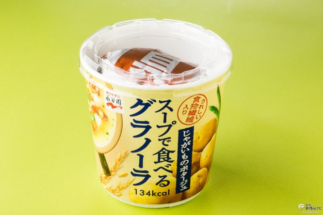 株式会社永谷園(東京都港区)からヘルシー志向の小腹満たし系カップ商品『スープで食べるグラノーラ じゃがいものポタージュ』(32g・希望小売価格 税抜150円・2014年11月3日発売)が発売となった。