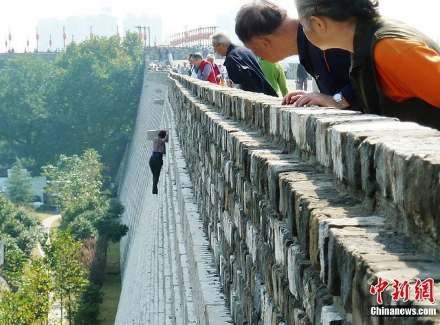 【スパイダーおばちゃん】20mの南京城をよじ登る、もちろん素手で! (1/2ページ)