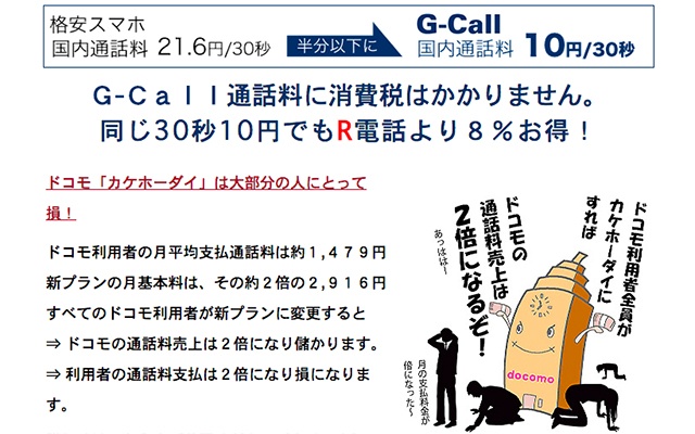 プレフィックス番号が4ケタで短いのが特徴。また、通話料金に消費税がかからないとして、他社より通話料がさらに8%お得だとアピールしている。