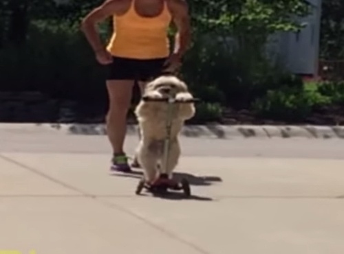 キックスクーターの達人…あっ、達犬だね(動画)