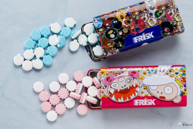 『フリスク ネオ(フライトニングミント/ブルーミングチェリー)』村上隆コラボのドクロや笑う花も出る傑作品