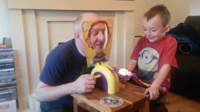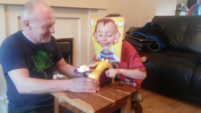 海外ではメジャーなパイ投げゲームみたいで、とっても楽しそうにゲームをするおじいちゃんと孫の動画。ルーレットを回して1〜5の出た数字の回数、ハンドルを回すというもの。終始大爆笑の2人のやり取りがカワイイ。