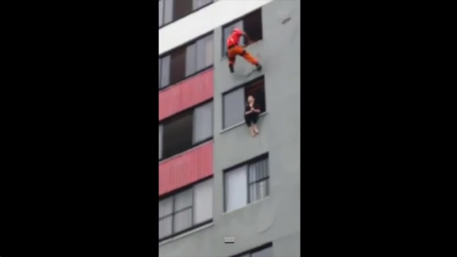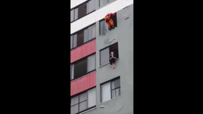 【危機一髪】投身自殺をはかろうとする女性を意外な方法で救うブラジルの消防士