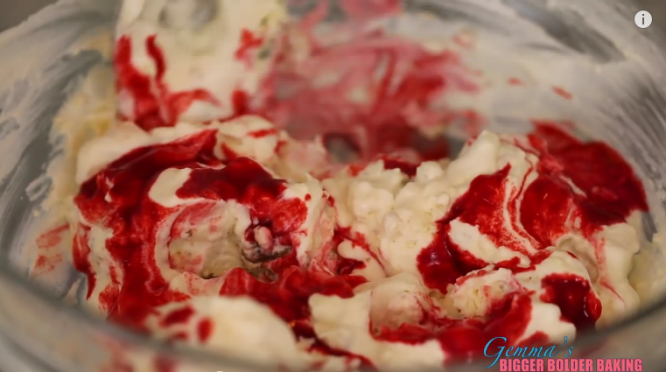 例えば、ストロベリーチーズケーキアイスなら、細かくしたチーズケーキに、