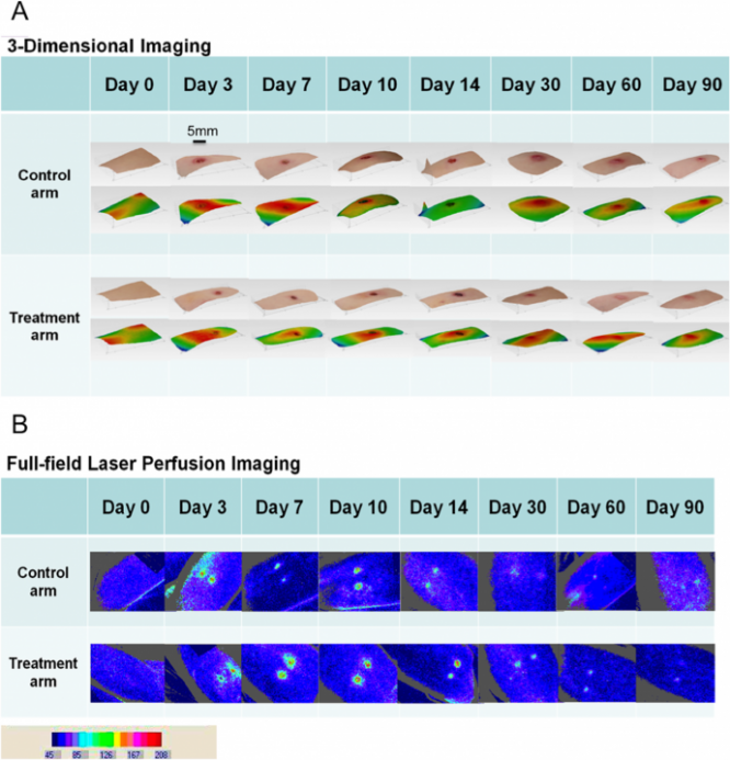この研究成果は、同大学とOxford BioElectronics社が協同研究する治療装置や傷を覆う素材の評価に役立っている。ボランティアの上腕には、2箇所の傷が付けられ、一つは自然治癒に任せ、もう一つは電気の刺激を与えながら2週間の経過を比べてみた。