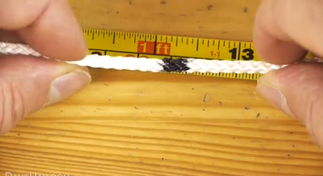 伸びているロープをくぐらせ、印をひっかけ両手で引き合う。