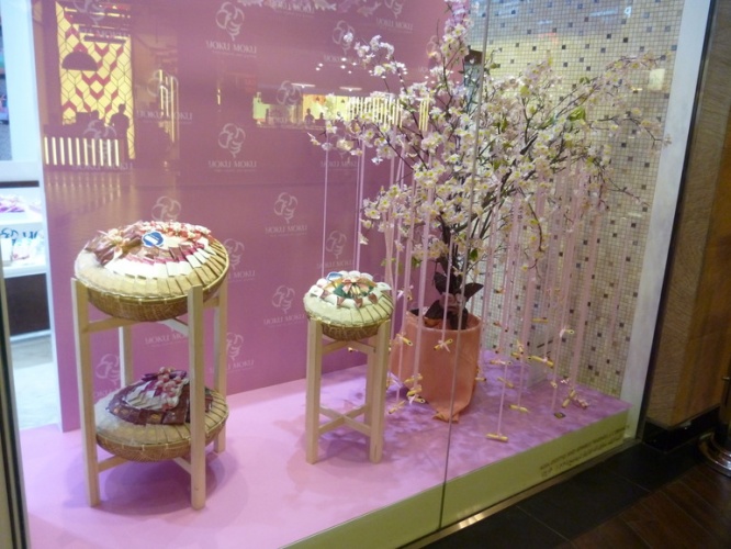 お店入り口のショーウインドーには、日本の春を思わせる、上品で素敵な飾り付けが…。