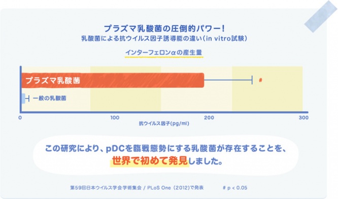 一方で“プラズマ乳酸菌”は、対ウイルス戦の要であるpDCを直接活性化させるという、これまでにない画期的な発見がされました。