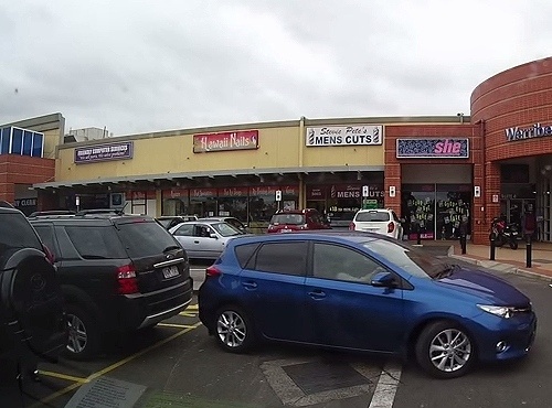 スーパーの駐車場で、車をバックで駐車しようとする女性ドライバー。