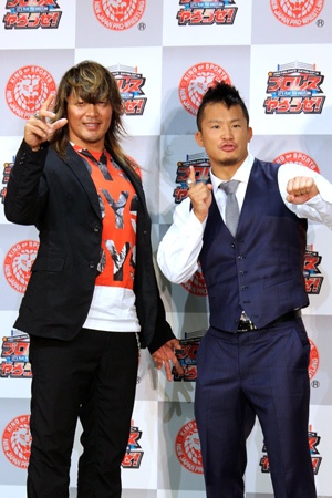 新日本プロレスリングに所属するスター選手たちが実名で登場するとして話題のスマホゲーム「プロレスやろうぜ!」が6月8日よりリリース開始され、都内で発表会見が行われた。