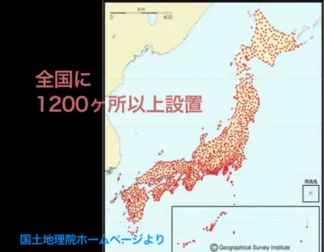 測定をするための固定GPS局が全国1200ヶ所に設置され、ミリ単位の変動を地震予測に使用しています。