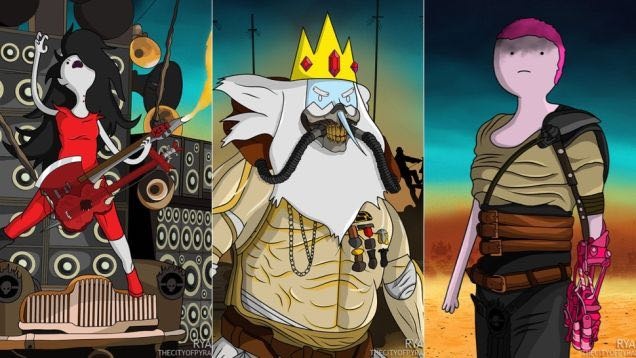 グラフィックアーティストのライアン・メイさんが、核戦争後の魔法が復活した世界を描いたアニメ『アドベンチャー・タイム』の登場人物を、ポストアポカリプス映画『マッドマックス 怒りのデス・ロード』にキャスティングしたイラストを公開しています。