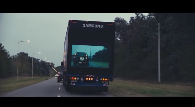 そこで、SAMSUNGが考えたのは、トラックが後続車に「安全」を与えられること。