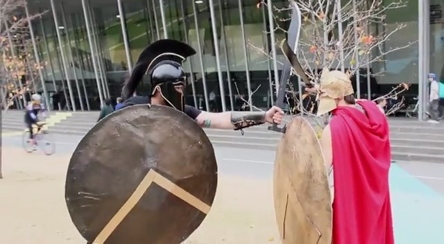 屋外では『300』のコスプレがぶつかり合っていますが、各軍1人ずつなのがちょっと寂しいかなと。