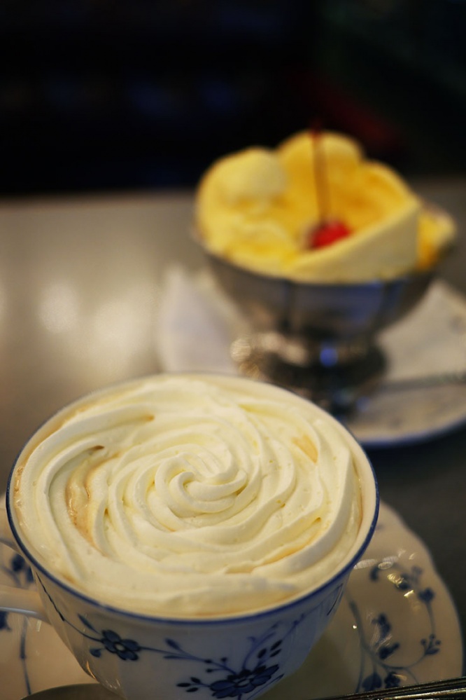 そんな『ギャラン』でオススメしたいメニューは、なんといってアイスクリームである。まるで薔薇のように盛られたアイスは、まるでご馳走のごとく、オーラを放っている。そのオーラ、実はアイスクリームが放っている冷気で、それがよりいっそう、美味しそうな雰囲気を出している。