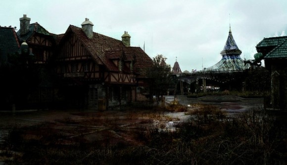 魔法がとけたディズニーランド。人類が滅亡し荒廃したディズニーランドを表現