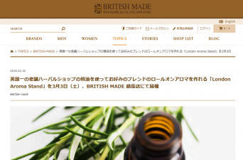 東京・銀座「BRITISH MADE 銀座店」で3月3日に開催「Stories of British Life」がコンセプトの「BRITISH MADE」銀座店では、3月3日(土)に、自分好みのロールオンアロマを作るイベント「London Aroma Stand」を開催する。英国一の老舗ハーバルショップの精油を使用英国一老舗のハーバルショップ「Baldwin」の精油を使い、自分好みのロールオンボトル入りアロマを作れるイベントが「London Aroma Stand」だ。開催時間は、午前の...