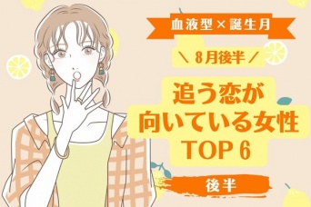 「【血液型×誕生月】8月後半、「追う恋が向いている女性」ランキングTOP6<後半>」のページです。デイリーニュースオンラインは、女子などの最新ニュースを毎日配信しています。