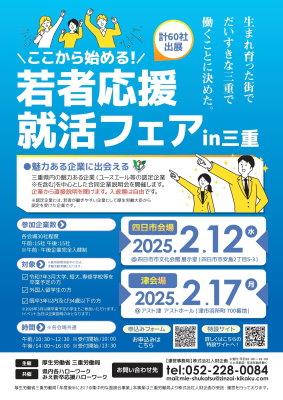 三重県企業が出展!四日市市・津市にて「若者応援就活フェア」2025年2月17日(月) 開催