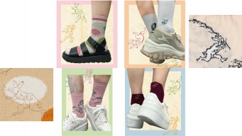 「鳥獣戯画」の擬人化した動物たちを編みや刺繍でデザインしたソックス『鳥獣戯画と福助さん』発売