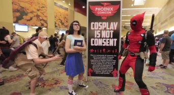 アリゾナ州で開催された、「フェニックス・コミックコン2015」。ここにもやっぱり! コミコン荒らしのデッドプールことD Piddyさんが参戦しました。今回はどんな迷惑をかけてきたのでしょうか? 会場を混乱のズンドコに陥れる俺ちゃんの、爆笑動画をごらんください! トップ画像は、亀仙人が女性のおケツにタッチしようとしているところに遭遇したデッドプール。 最近は各地のコンベンション会場に「Cosplay is not Conse...