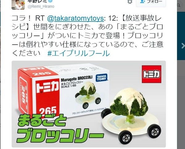 (画像)【放送事故】タカラトミー平野レミ伝説のレシピ「まるごとブロッコリー」をネタに!ネットでほしいの声