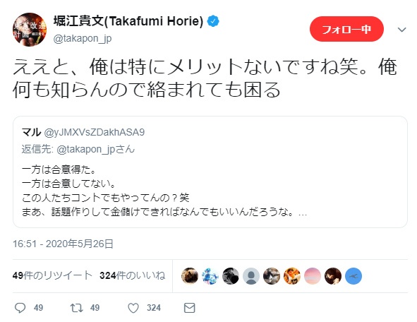 (画像)ホリエモン新党会見後にホリエモンがツイート「俺何も知らんので絡まれても困る。合意もなにもしてない」